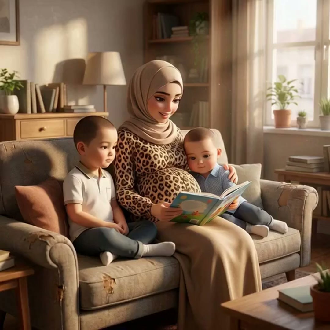 The camera starts with a tight close-up on Sanira's trembling hands as they slowly release her sons' smaller hands. It then pans up to her face, showing a mixture of physical exhaustion and maternal agony. In the background, Venus steps forward and gently places her hands on the boys' shoulders, leading them toward the door as the room grows darker around Sanira. Off-screen voiceover (all char...